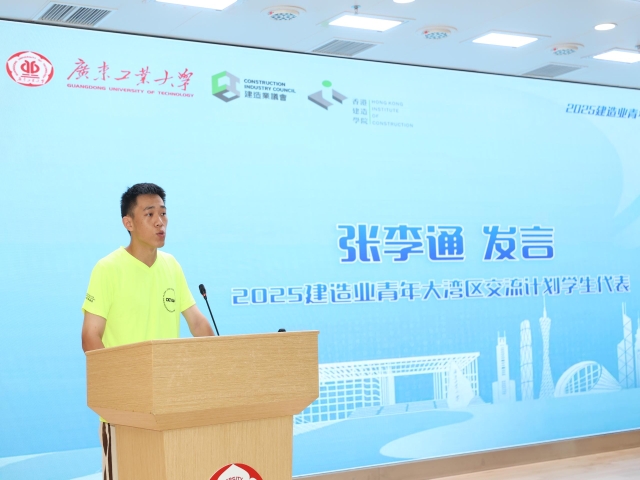 来自广工的张李通作为学生代表发言。他分享到自己报名参加本次活动源于去年作为志愿者身份参与活动的感触——看见青年学子在交流中收获成长,让他无比向往能以参与者的身份深度融入研学活动。他表示将珍惜这次难得的机会,积极与香港青年交流互动,努力学习专业知识和技能,为大湾区建造业的发展贡献自己的力量。